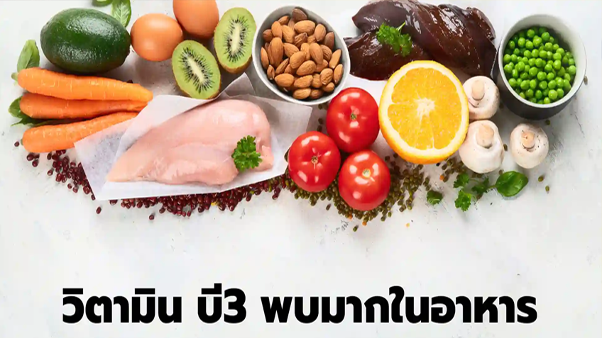 แหล่งที่พบวิตามินบี 3 ตามธรรมชาติ ได้แก่ ไข่ ปลา เนื้อไม่ติดมัน เนื้อขาวจากพวกสัตว์ปีก ตับ โฮลวีต จมูกข้าวสาลี ถั่วลิสง อะโวคาโด อินทผลัม ลูกพรุน มะเดื่อฝรั่ง บริเวอร์ยีสต์ เป็นต้น
